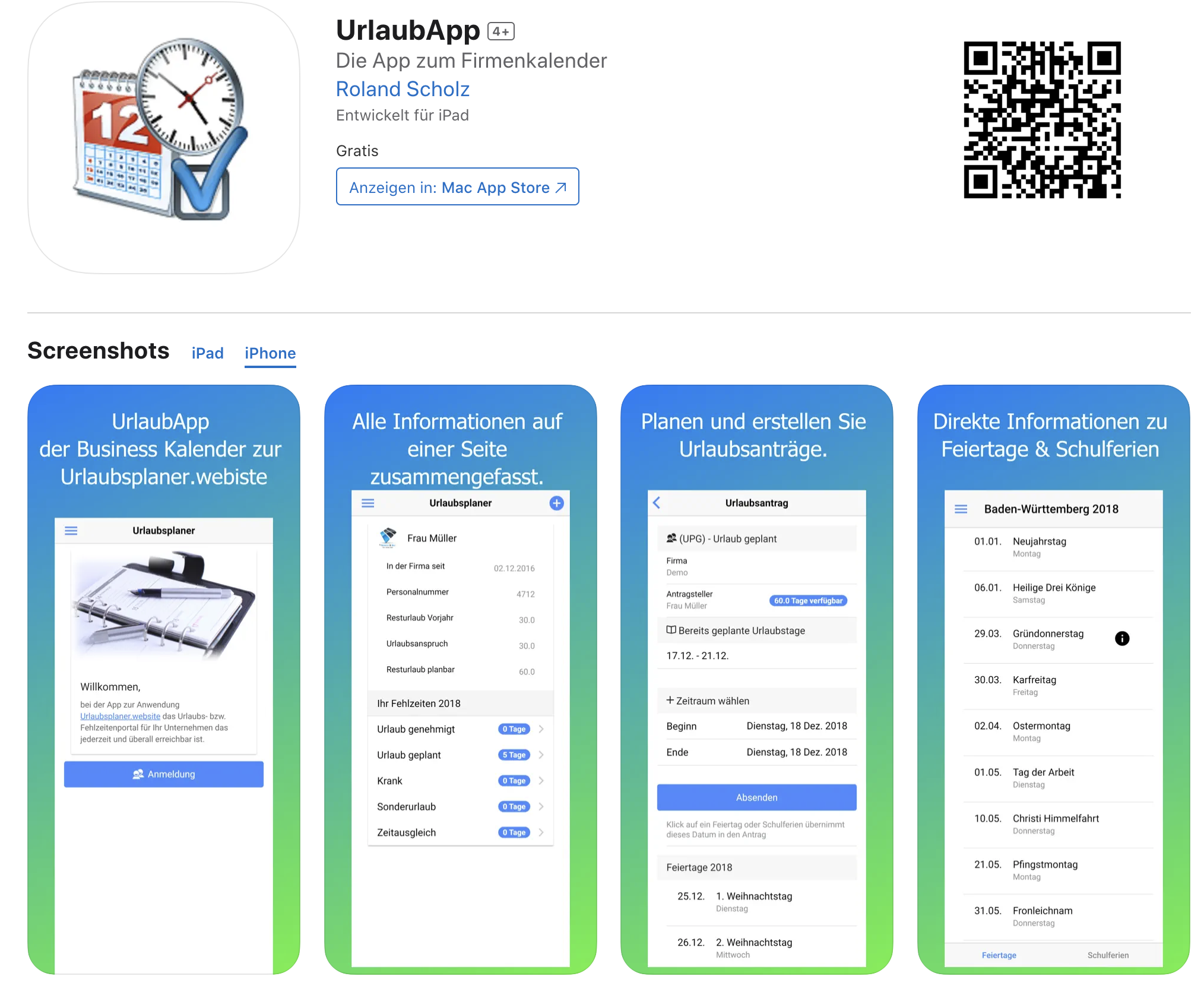 Mit unserer App können ihre Mitarbeiter von ihrem Smartphone aus ihre Fehlzeiten einsehen sowie Urlaubstage planen und die Urlaubsanträge direkt an das Portal zur Genehmigung versenden.